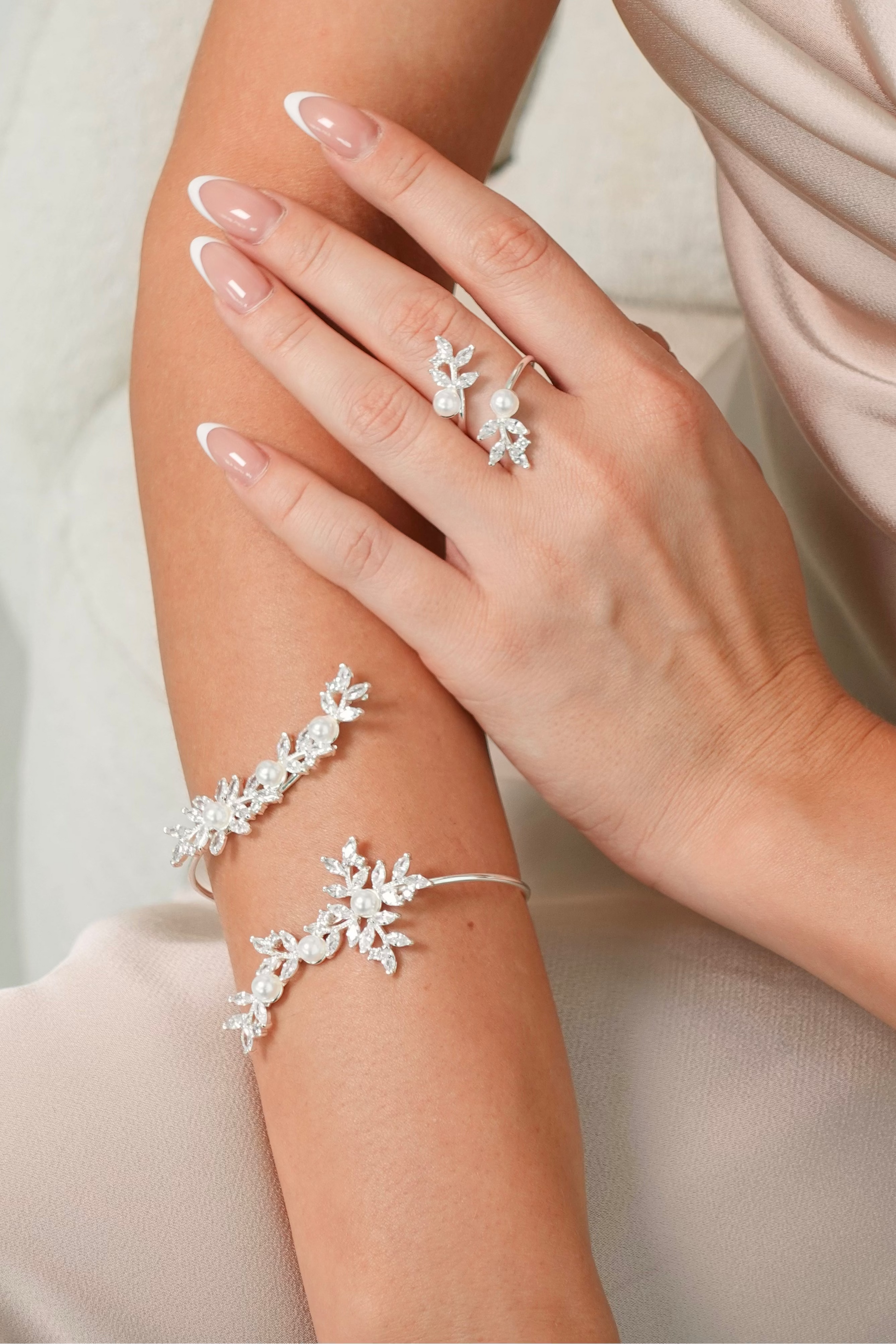 بأحجار زركونيا لامعة، ومُزينة بلمسة لؤلؤية ناعمة. مزيج مثالي من التألق والأناقة، مُصمّمة لتُضفي على إطلالتك لمسةً من الفخامة والرقي